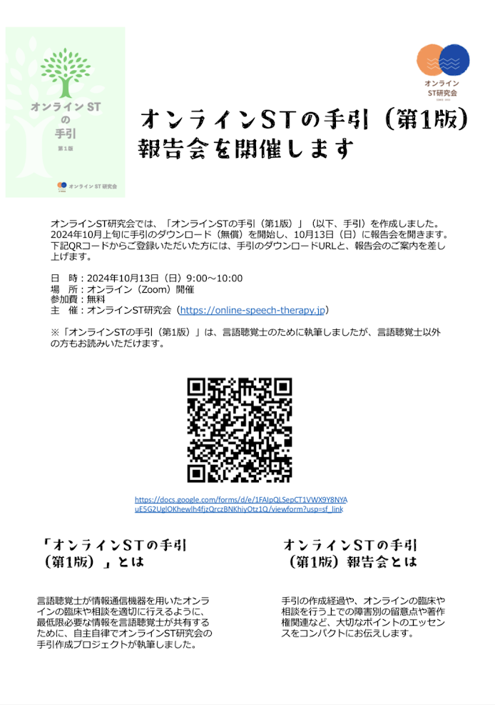 オンラインSTの手引き(第1版)完成報告会について ~オンラインST研究会からのお知らせ~